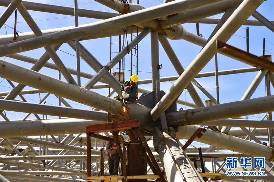 7月27日,工人在拉萨贡嘎国际机场T3航站楼的工地上作业。新华社记者 田金文 摄