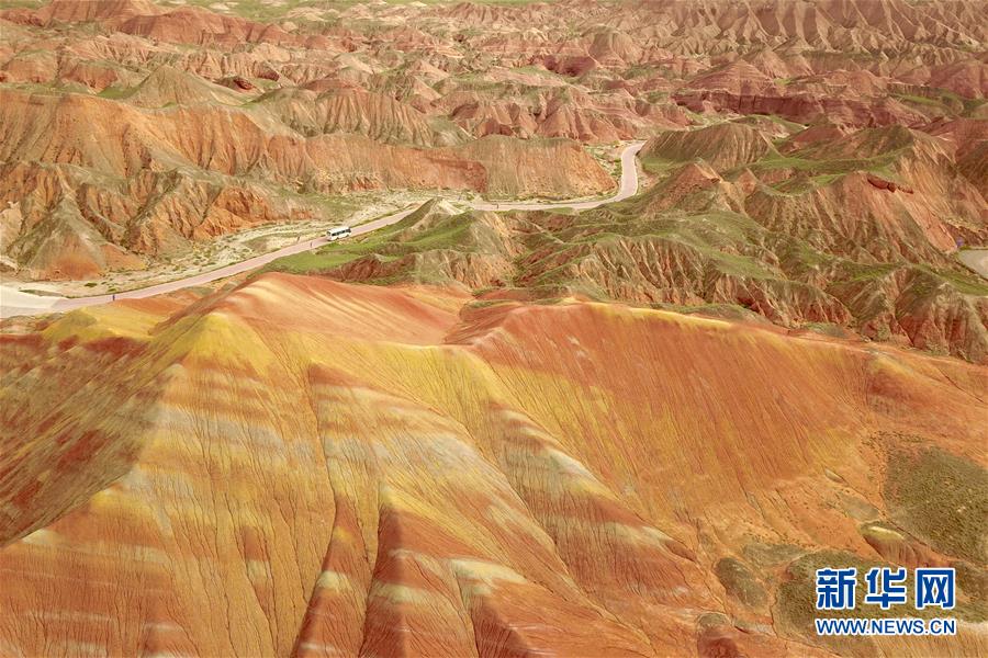 这是7月27日拍摄的张掖世界地质公园七彩丹霞景区景观(无人机照片)。新华社记者 范培珅 摄