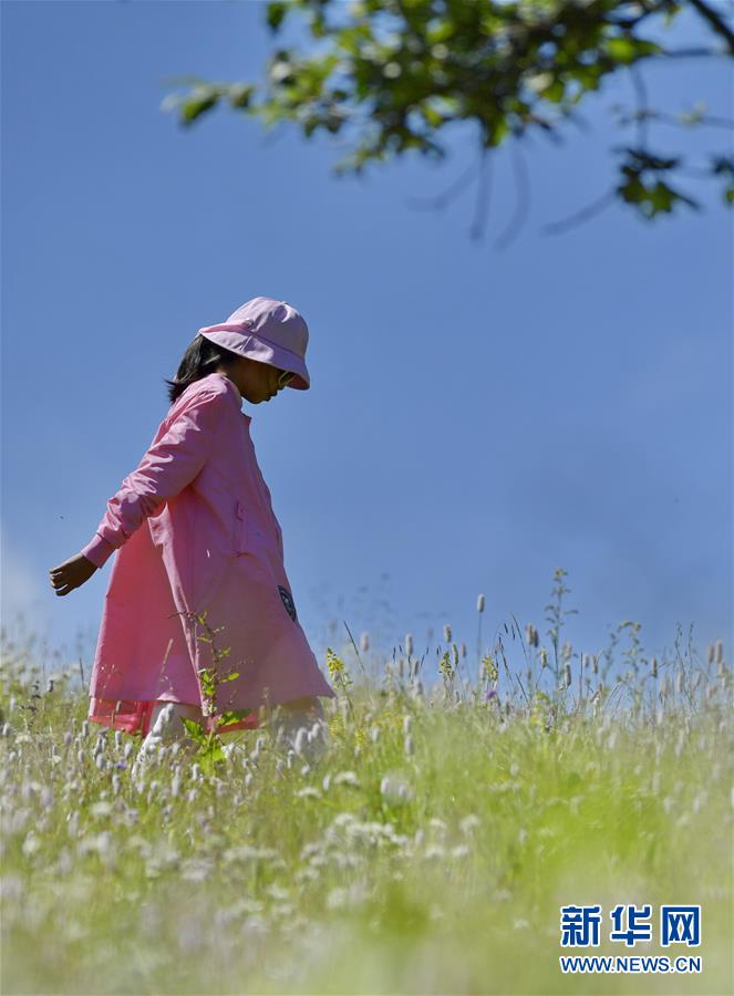 一名游客在鲁朗旅游小镇的高山牧场游玩(7月26日摄)。新华社记者 张汝锋 摄