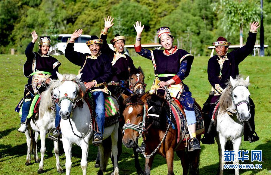 鲁朗旅游小镇农牧民向游客招手致意(7月26日摄)。新华社记者 张汝锋 摄