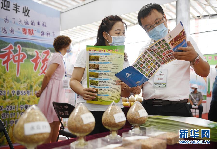 7月27日,参会者在展览现场了解种子产品。新华社记者 王鹏 摄
