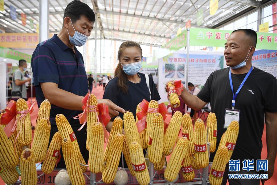 7月27日,参会者在展览现场了解玉米种子产品。新华社记者 王鹏 摄