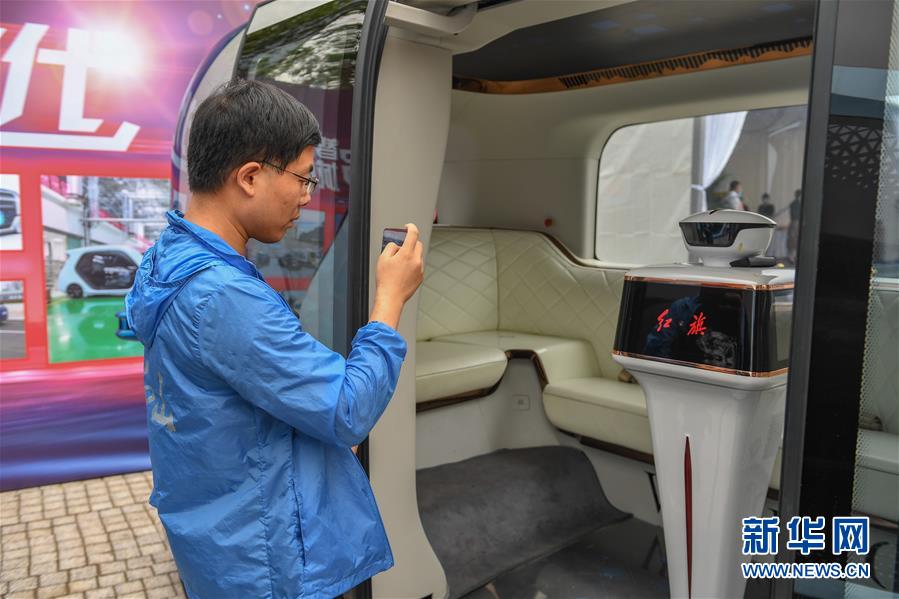 7月28日,参观者拍摄红旗无人驾驶概念车。