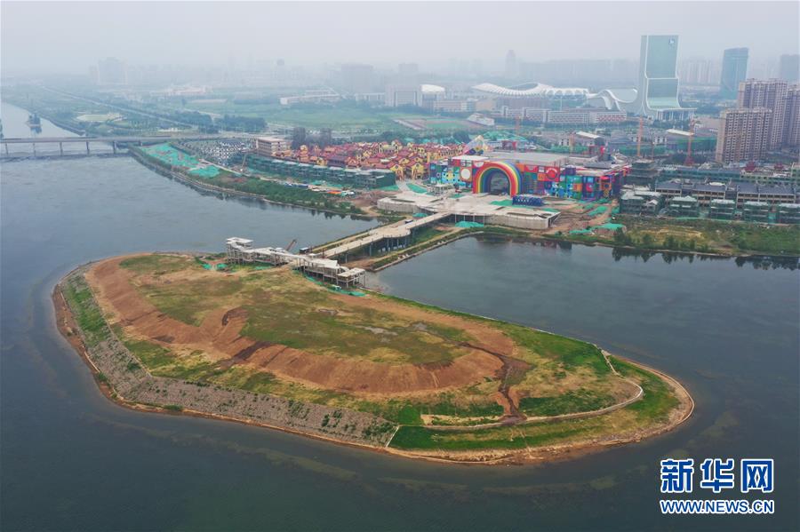 7月28日拍摄的建设中的迁安市中唐·天元谷文化旅游综合体项目(无人机照片)。新华社记者杨世尧摄