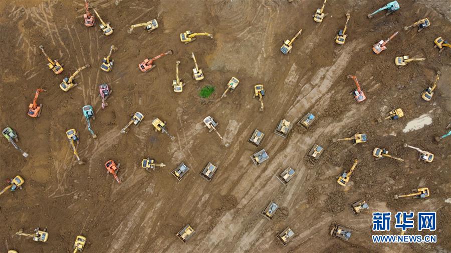 7月28日,在姜唐湖蓄洪区戴家湖一处涵闸险情处置现场,人们操作机械设备在抢筑临时圩堤(无人机照片)。新华社记者张端摄