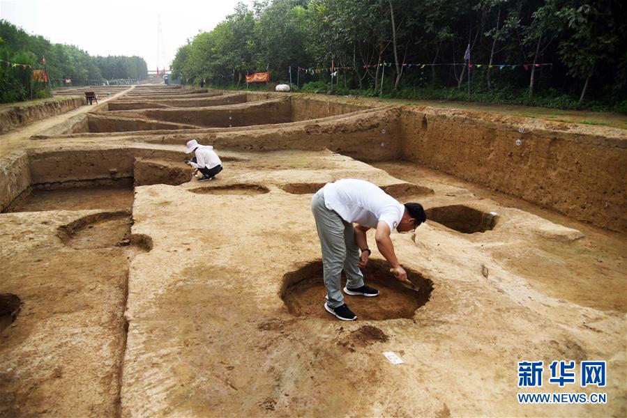 7月28日,考古工作者在对济南梁王遗址内战国时期古城遗址进行考古发掘。新华社记者王凯摄