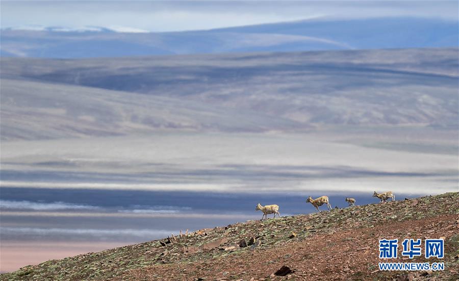 这是7月7日在可可西里卓乃湖区域拍摄的藏羚羊。新华社记者张龙摄