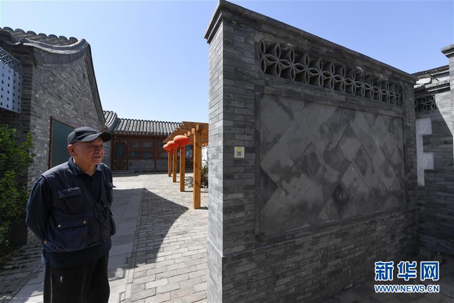 69岁的居民崇宝才在修缮一新的北京市东城区雨儿胡同30号院内(5月13日摄)。新华社记者鞠焕宗摄