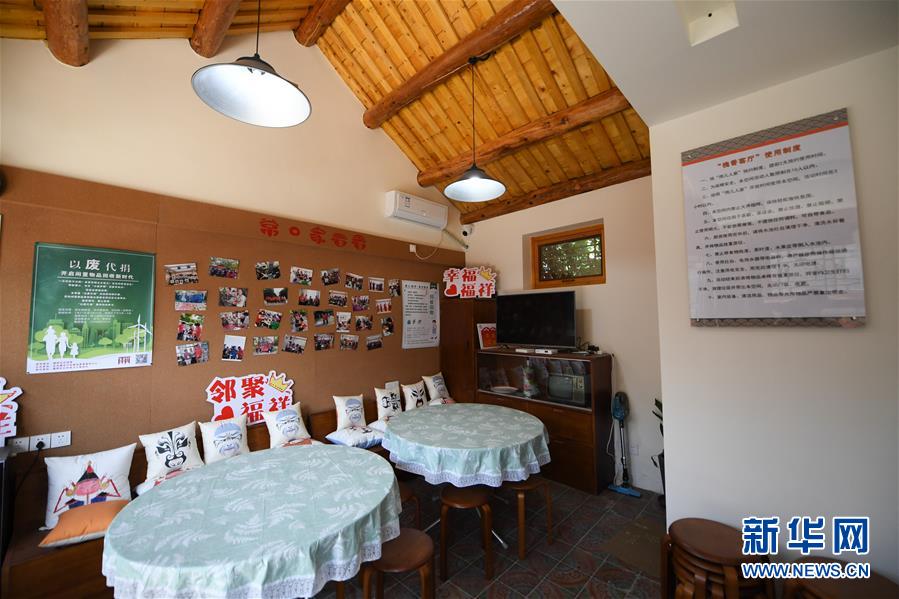 北京市东城区雨儿胡同30号院内,腾退后的房子改造成的“槐香客厅”,成为居民议事、活动的公共空间(5月13日摄)。新华社记者鞠焕宗摄