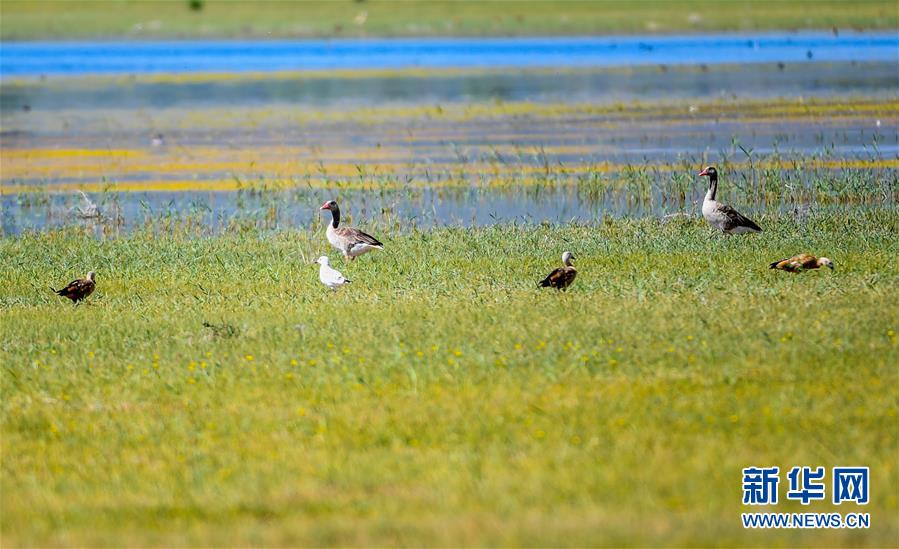 7月28日,灰雁和遗鸥在桃力庙—阿拉善湾海子觅食。鄂尔多斯湿地位于库布齐沙漠、毛乌素沙地接壤地带,2002年被列入国际重要湿地名录。从2006年开始,由于湿地湖面萎缩、湖心岛消失,在此筑巢繁殖的世界濒危物种遗鸥几近消失。近年来,当地采取多种治理措施,湿地生态环境逐步好转。2019年起,湿地内的桃力庙—阿拉善湾海子迎来遗鸥大规模“回归”。如今,40多种鸟类在此栖息,鄂尔多斯湿地重新成为鸟类的乐园。新华社记者彭源摄