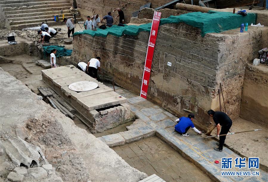 工作人员在河南省开封市州桥及附近汴河遗址进行清理发掘(7月27日摄)。新华社记者李安摄