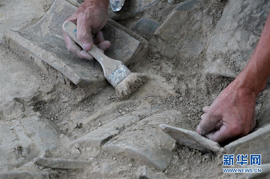 工作人员在河南省开封市州桥及附近汴河遗址进行清理发掘(7月27日摄)。新华社记者李安摄
