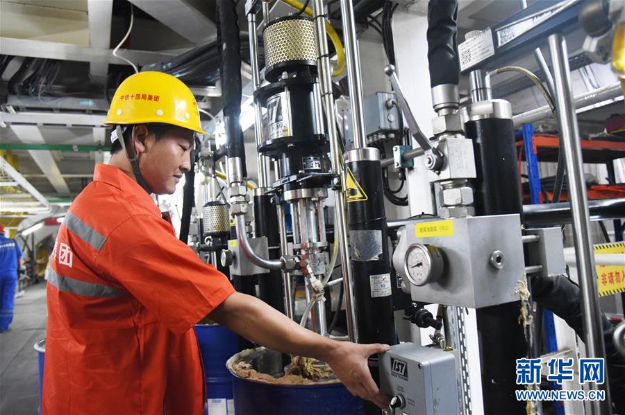 7月29日,“万里黄河第一隧”——济南黄河隧道工程施工人员在施工作业。新华社记者王凯摄