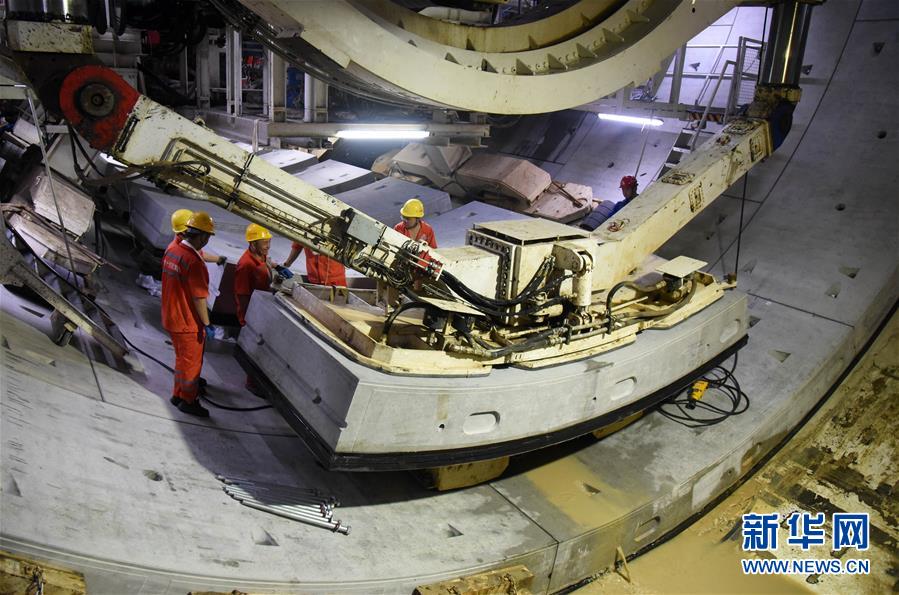 7月29日,“万里黄河第一隧”——济南黄河隧道工程施工人员在施工作业。新华社记者王凯摄