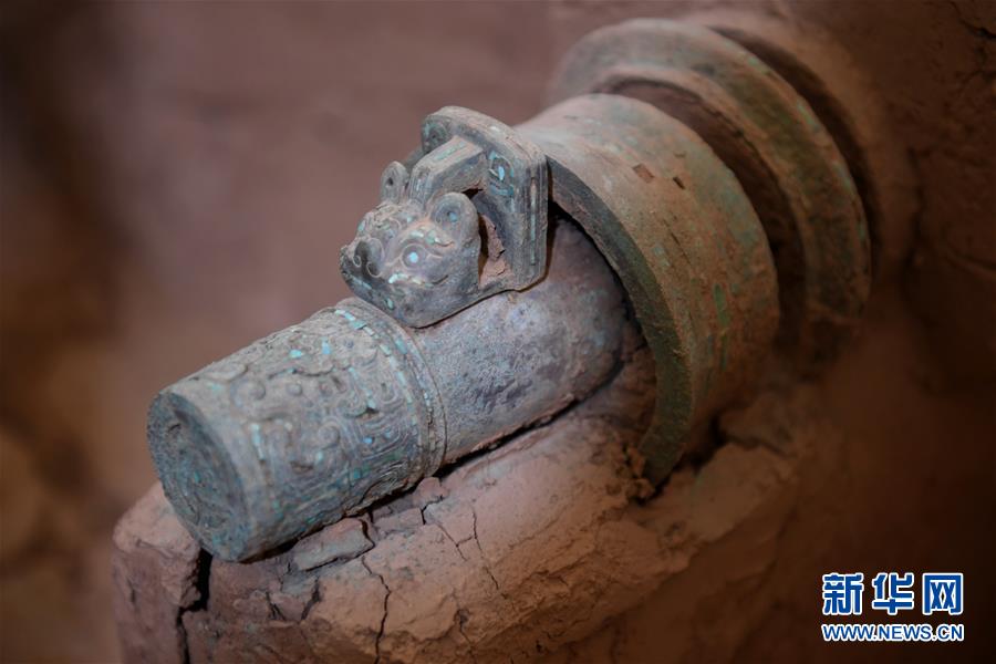 这是7月30日在陕西省考古研究院泾渭基地拍摄的西周晚期青铜轮牙马车车辖。新华社记者李一博摄