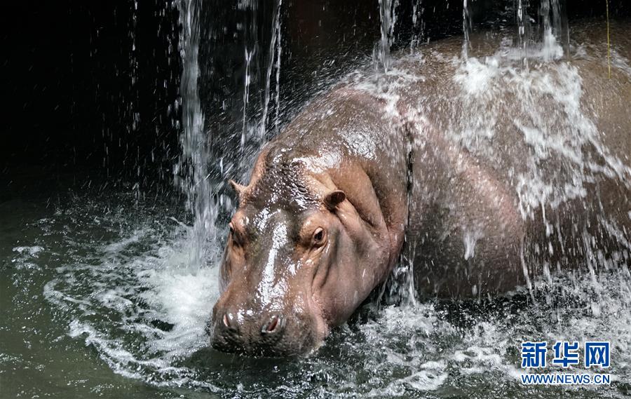 北京动物园的河马在水池中乘凉(7月30日摄)。炎炎夏日,北京动物园根据动物生活习性,为动物配备了自动喷淋喷雾、空调笼舍、恒温水池、遮阳棚等各类避暑设施,同时还准备了西瓜等降温食品,保障动物平安舒适地度过伏天。新华社记者李欣摄