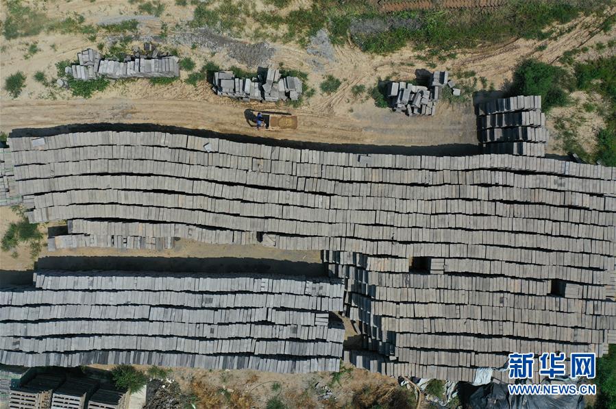 7月30日,河北省任丘市出岸镇古建砖厂工人在搬运砖坯(无人机照片)。