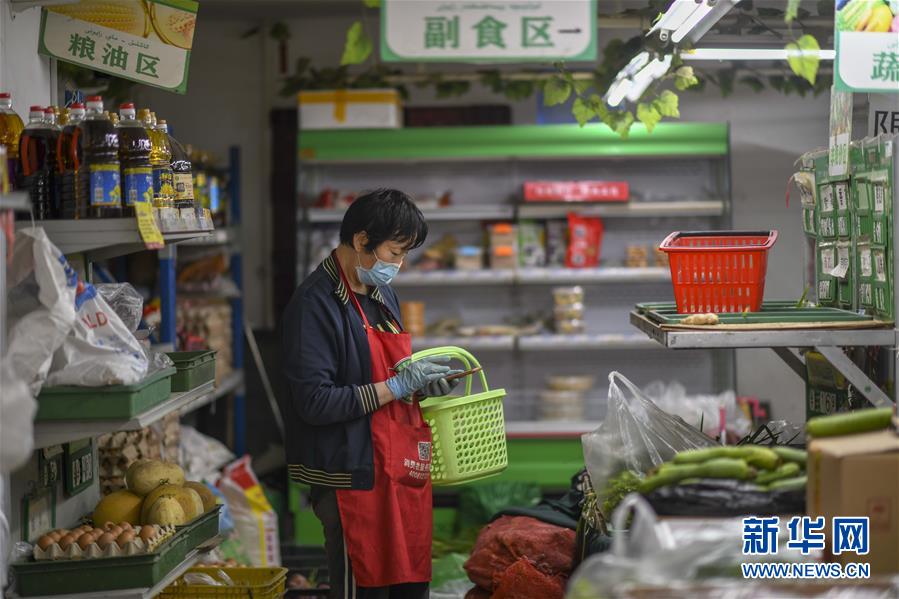 7月30日,在乌鲁木齐经济技术开发区(头屯河区)天鹅湖社区一家超市,商贩按照住户的订单配送果蔬。新华社记者赵戈摄