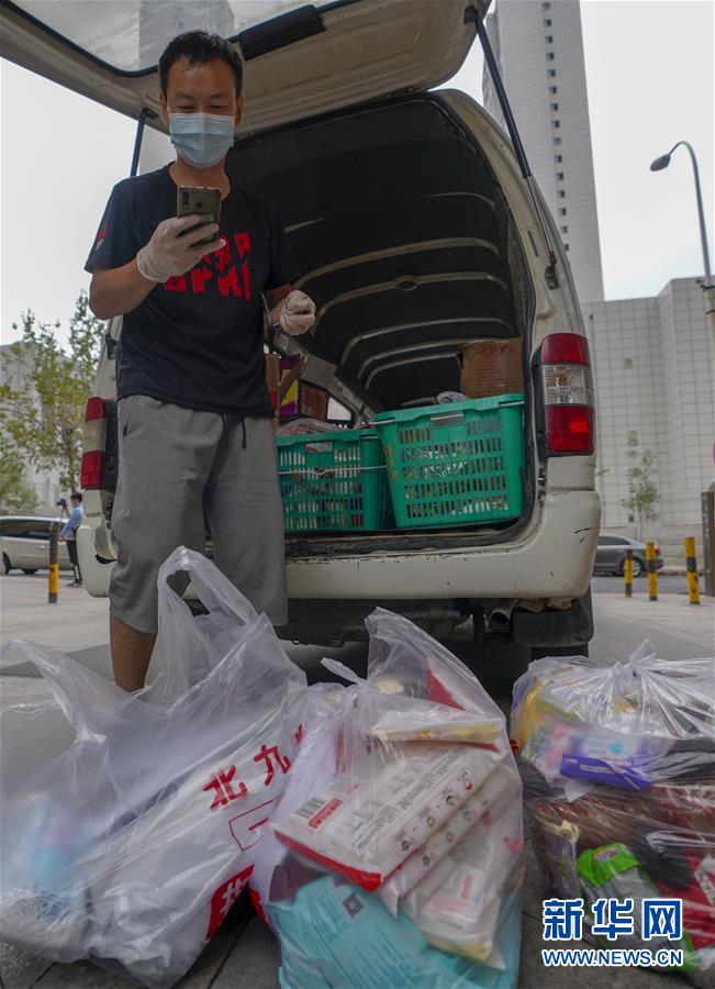 7月30日,在乌鲁木齐经济技术开发区(头屯河区)万达华府小区,商贩打电话告知住户订购的商品已经送达。新华社记者赵戈摄