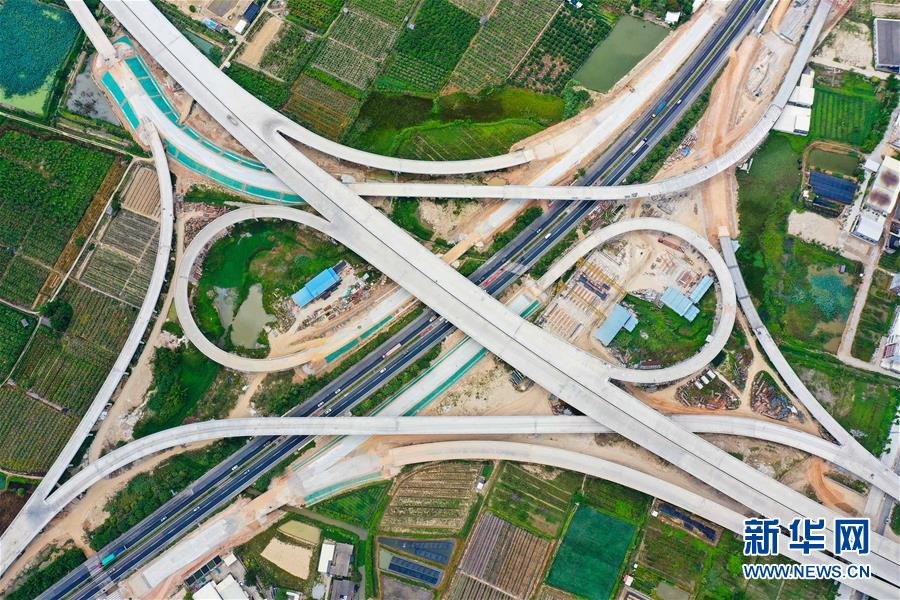 这是已经建设完成的潮汕环线高速公路上北互通立交,沈海高速公路从该互通立交下面穿过(无人机照片,7月31日摄)。目前,中铁四局承建的广东潮汕环线高速公路工程进展顺利,预计2020年年底通车。潮汕环线高速公路是广东省“十三五”重点工程,项目全长约84.6公里,串联沈海、汕昆、汕湛、潮惠、揭惠等多条高速公路和国省道。该高速公路建成通车后,将进一步完善潮汕地区的交通运输体系,加强潮汕机场、厦深高铁潮汕站以及汕头港等交通枢纽的联通对接,成为连接汕头、潮州、揭阳三市的高速通道,对推动粤东振兴发展有重要意义。新华社记者刘大伟摄