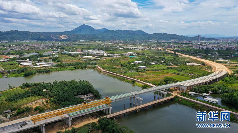 潮汕环线高速公路北溪河桥正在架梁(无人机照片,7月31日摄)。新华社记者刘大伟摄