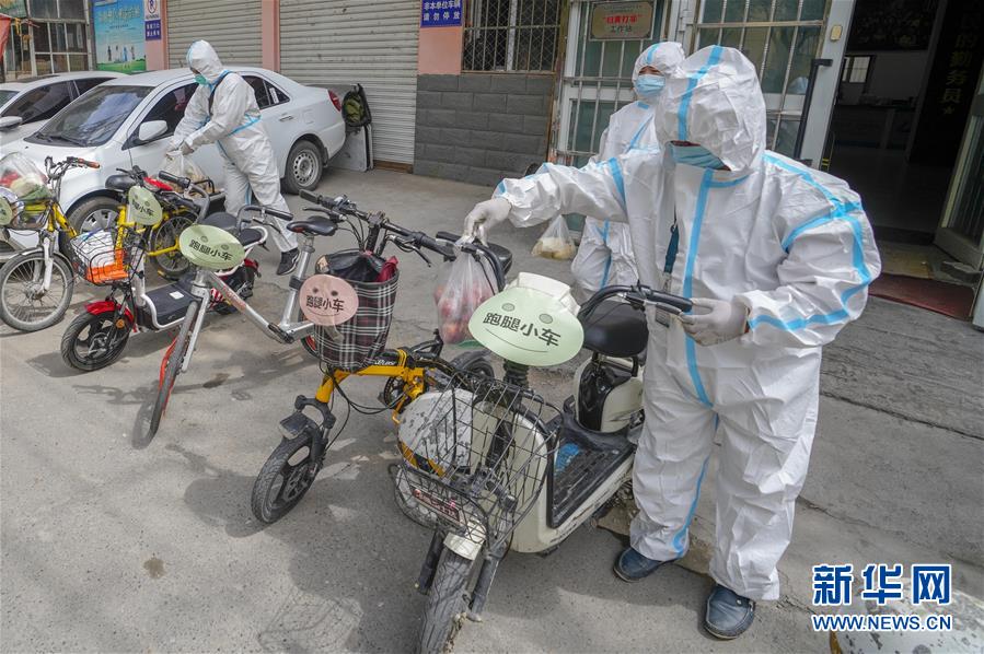 8月3日,在乌鲁木齐天山区西河坝前街社区,社区工作人员准备骑上”跑腿小车“为居民送去生活物品。新疆乌鲁木齐市天山区西河坝前街社区主次干道较多,院落分布分散。新冠肺炎疫情防控期间,社区整合现有资源,将暂时闲置的自行车、电动车集中起来,贴上“跑腿小车”标识,成立便民服务队,社区工作人员通过“跑腿小车”可将居民网络定制的“菜袋子”“药盒子”快速送达,给居民带来方便。新华社记者赵戈摄