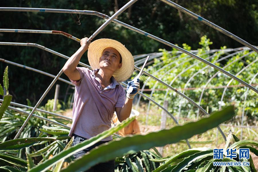 8月3日,在碗米坡镇首八峒村,村民在抢修大棚.。新华社记者陈思汗摄
