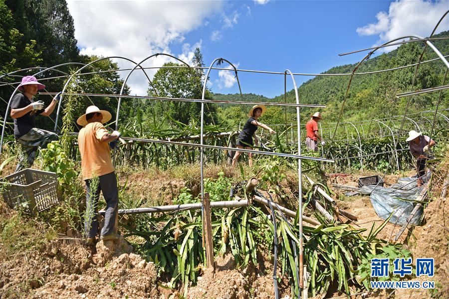 8月3日,在碗米坡镇首八峒村,村民在抢修大棚。新华社记者李鑫摄