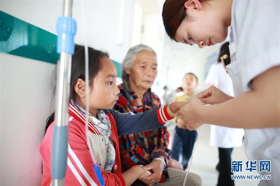 搬迁群众在柏杨林易地扶贫搬迁安置点卫生院内治疗(8月3日摄)。贵州省毕节市七星关区柏杨林易地扶贫搬迁安置点是毕节市最大的易地扶贫搬迁安置点,总面积约1.1平方公里,从2017年开始至今,共有34个乡镇6372户29001人安置到位。如今,安置点内教育、医疗、就业扶贫车间、长幼日间托养照料中心等设施齐全,搬迁群众在这里过上了安居乐业的幸福生活。新华社记者刘续摄