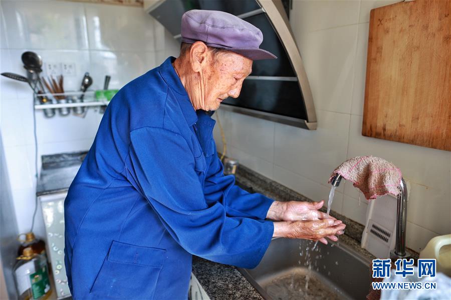 石连英在柏杨林易地扶贫搬迁安置点家中洗手(8月3日摄)。贵州省毕节市七星关区柏杨林易地扶贫搬迁安置点是毕节市最大的易地扶贫搬迁安置点,总面积约1.1平方公里,从2017年开始至今,共有34个乡镇6372户29001人安置到位。如今,安置点内教育、医疗、就业扶贫车间、长幼日间托养照料中心等设施齐全,搬迁群众在这里过上了安居乐业的幸福生活。新华社记者刘续摄