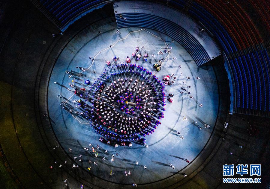 演员在苗族大型山水实景演出《西江盛典》中表演(7月30日摄,无人机照片)。新华社记者陶亮摄