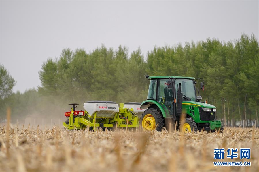 5月7日,在吉林省梨树县,农民驾驶免耕播种机播种玉米。新华社记者张楠摄