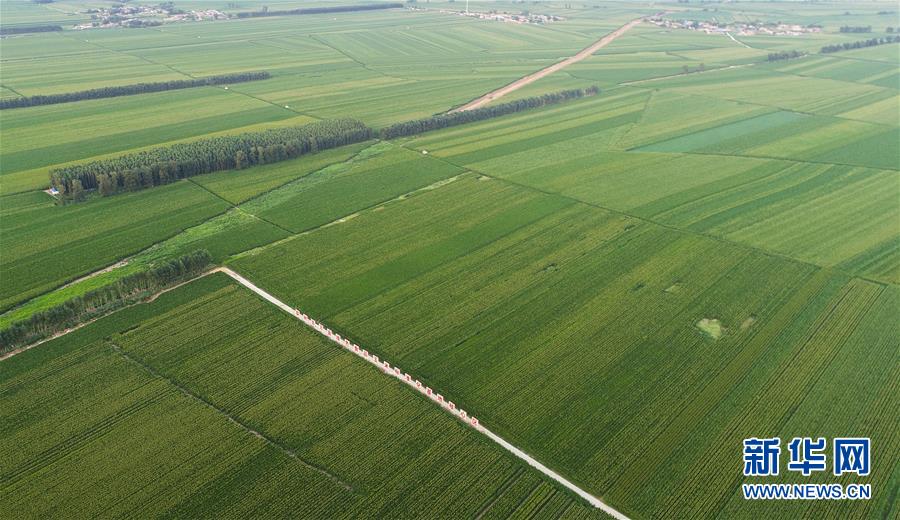 吉林省梨树县国家百万亩绿色食品原料(玉米)标准化生产基地核心示范区(7月23日摄,无人机照片)。新华社记者许畅摄