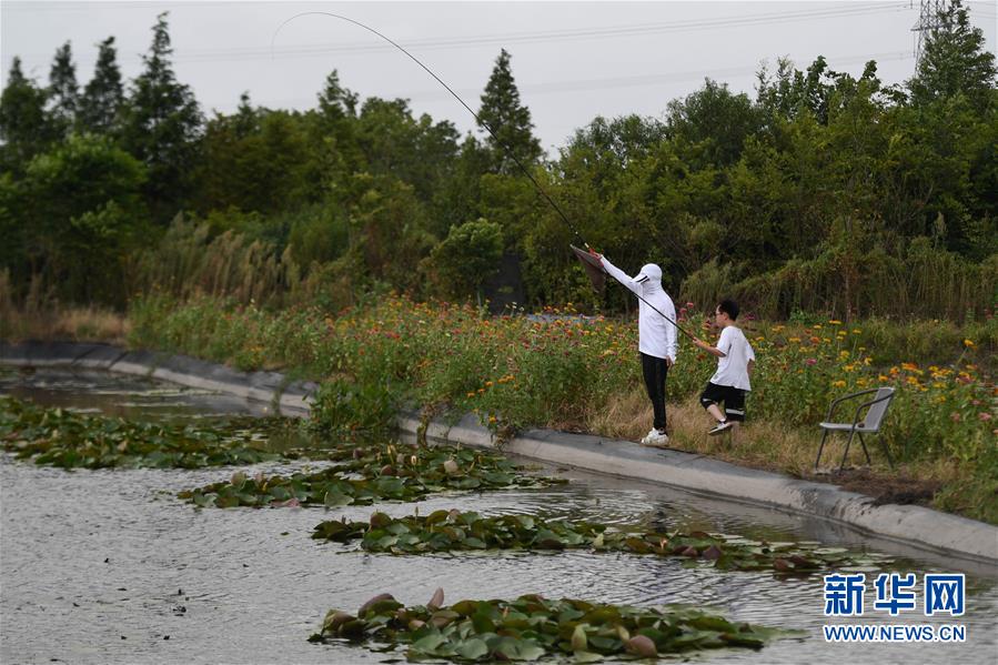 8月4日,游客在艺溯家生态农场钓鱼。农场在水塘中既种植香水莲花,又套养鱼虾,打造休闲农业。近年来,位于浙江湖州吴兴区八里店镇移沿山村的艺溯家生态农场,在约45亩的传统水产养殖池塘上规模化种植香水莲花,既净化水质,又提高了经济效益。农场还设计出种植、采摘和加工香水莲花的工艺流程,以面向更多农户推广。新华社记者黄宗治摄