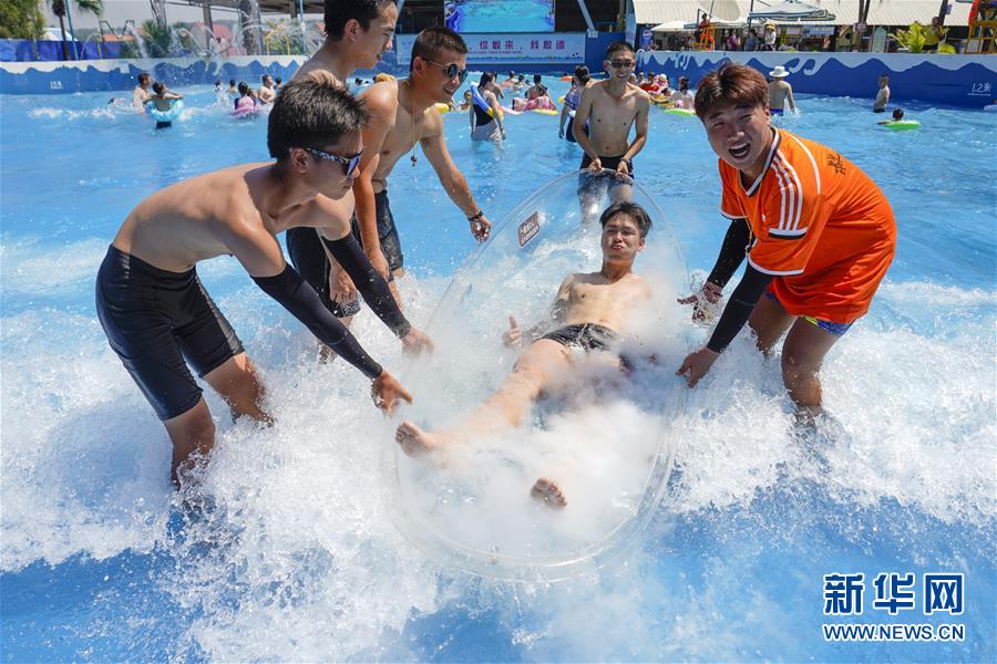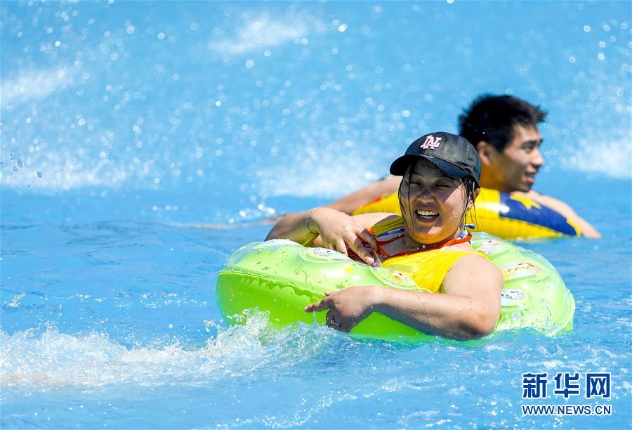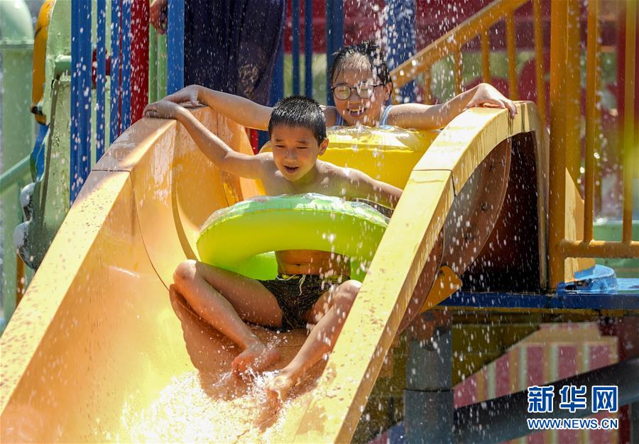 8月5日,重庆涪陵红酒小镇水上乐园内,市民在体验水上游乐项目。当日,重庆市气象台再次发布“高温橙色预警信号”,重庆大部分海拔400米以下地区日最高气温将升至37℃以上,局地可达40℃以上。许多重庆市民涌进当地的水上乐园和泳池,在水中享受夏季的清凉。新华社记者刘潺摄