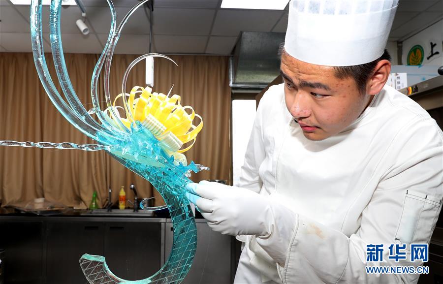 8月5日,糖艺比赛参赛选手在创作中。当日,第二十一届全国焙烤职业技能竞赛上海赛区选拔赛,在上海市现代食品职业技能培训中心举行,来自上海、江苏、浙江等地的近60名焙烤行业技师,在艺术面包、传统糕点、糖艺和艺术巧克力等项目中进行比拼,在充满焙烤香气的赛场上展现技艺。新华社记者方喆摄