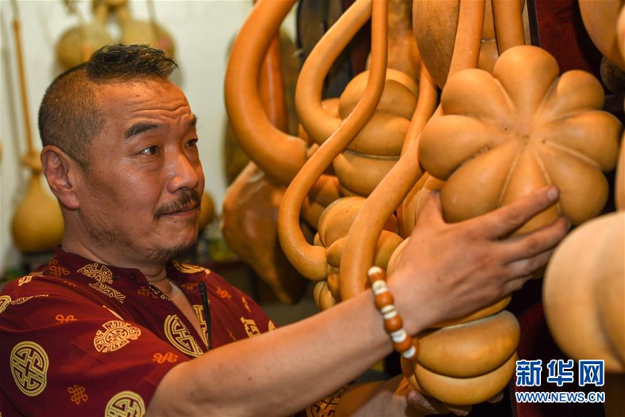 8月5日,侯景伟挑选适合创作的葫芦。今年55岁的吉林四平人侯景伟自幼与家人学习雕刻、烙画艺术。经过多年潜心研究,他将浮雕和烙画工艺相结合,通过抛光、起稿、雕刻、烙烫、套色等十余道工艺,制作展现传统文化、民俗故事的葫芦工艺品。2020年,侯景伟被评为四平市非物质文化遗产项目侯氏葫芦雕刻烙画代表性传承人。他说:“希望有更多人加入到非遗传承队伍中,让小葫芦‘讲’出更多民俗故事。”新华社记者张楠摄