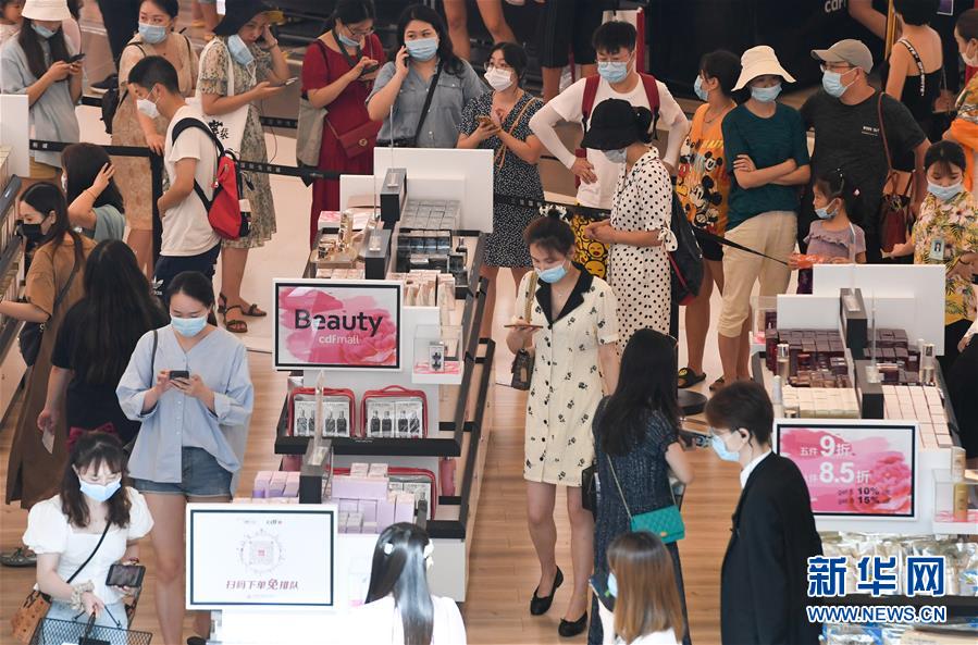 8月6日,游客在三亚国际免税城购物。新华社记者杨冠宇摄