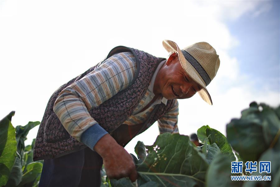 8月6日,村民在威宁县草海镇中海社区蔬菜基地种植西兰花。新华社记者刘续摄