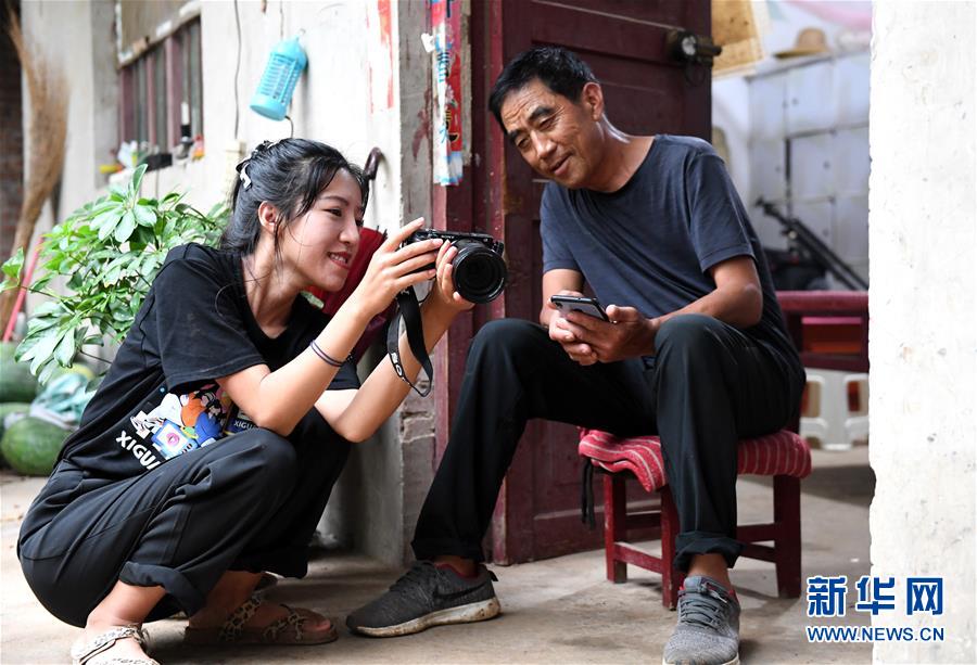 8月4日,王晓楠(左)与父亲在交流。新华社记者郝源摄
