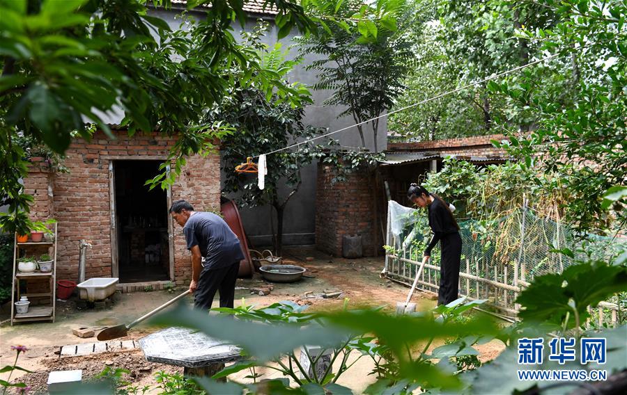 8月4日,王晓楠(右)与父亲在修理下水道。新华社记者郝源摄