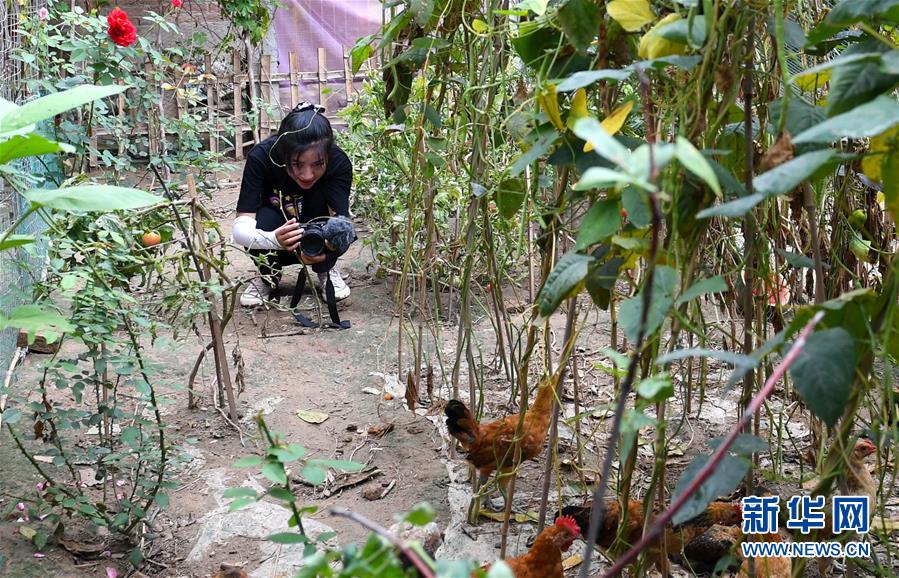 8月4日,王晓楠在家中拍摄短视频。新华社记者郝源摄
