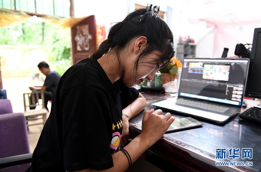 8月4日,王晓楠在剪辑视频。新华社记者郝源摄