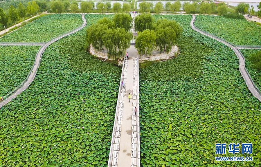 8月6日,游客在河北省永清县里澜城镇金华湖观赏荷花(无人机照片)。夏日时节,河北省永清县里澜城镇金华湖荷塘的荷花争相开放,吸引市民和游客前来游玩观赏。新华社记者李晓果摄