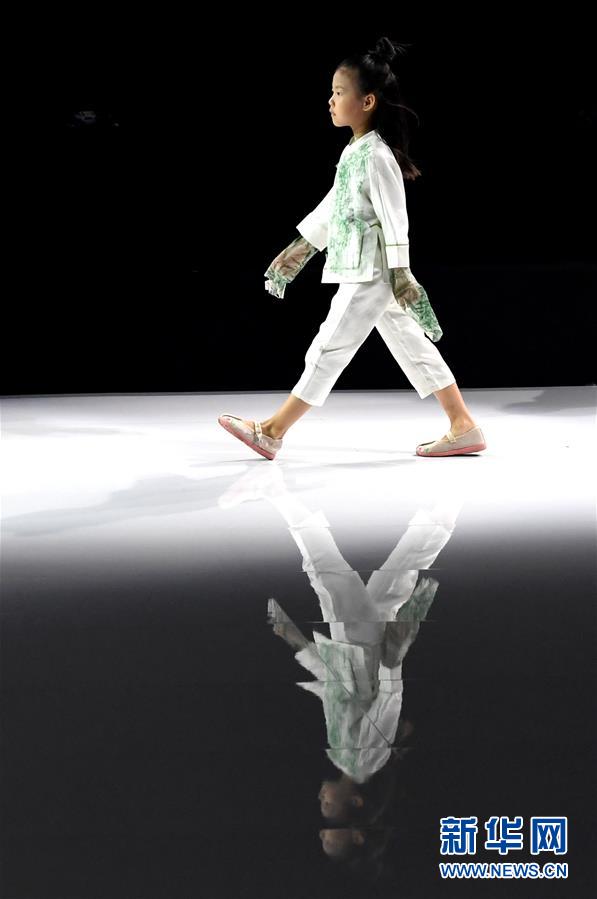8月7日,小模特在T台上展示童装。当日,2020中国(河南)国际大学生时装周举行童装设计专场展示。8月5日至7日,2020中国(河南)国际大学生时装周在河南省新密市豫发密兰小镇举行。新华社记者朱祥摄