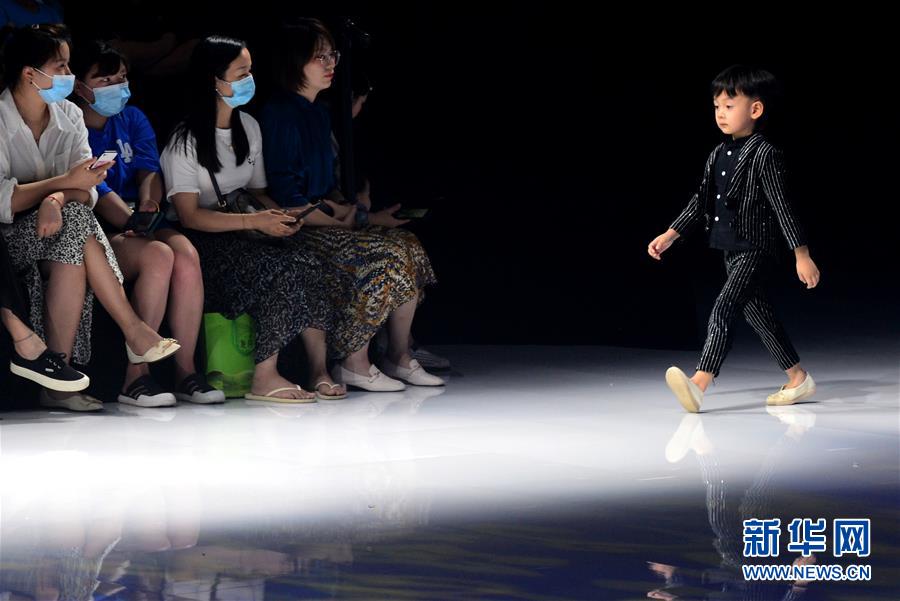 8月7日,小模特在T台上展示童装。当日,2020中国(河南)国际大学生时装周举行童装设计专场展示。8月5日至7日,2020中国(河南)国际大学生时装周在河南省新密市豫发密兰小镇举行。新华社发(海雨涵摄)