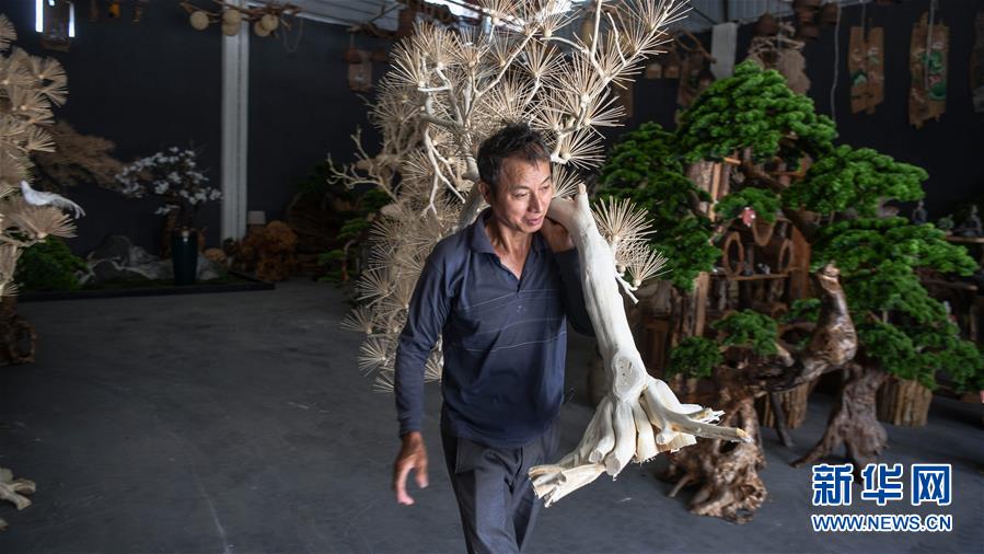 8月7日,一名工人在永福县永安乡根雕工艺品就业扶贫车间搬运根雕半成品。2017年以来,广西桂林市永福县永安乡通过帮扶返乡青年创业的方式,建立起根雕工艺品就业扶贫车间,组织贫困群众进车间务工学艺,把当地丰富的朽木和柑橘树根枝资源利用起来,加工成盆景、茶桌、吊灯等根雕工艺品,不仅帮助贫困群众在家门口掌握一技之长,还让他们在脱贫摘帽后实现稳定增收。新华社记者张爱林摄