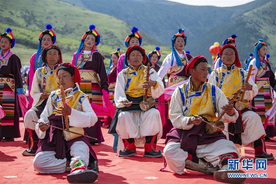8月7日,在西藏首届弦子舞展演现场,演出人员在表演弦子舞。当日,西藏首届弦子舞展演在昌都市芒康县举行。众多演员同台献艺,表演国家级非物质文化遗产弦子舞,吸引西藏各地的群众前来观看。新华社记者孙非摄