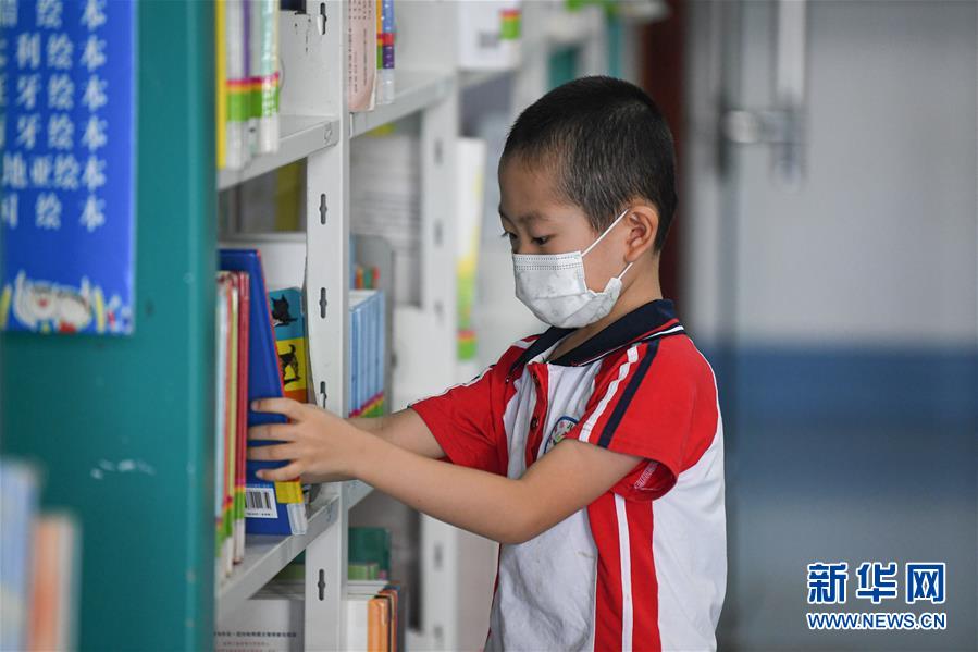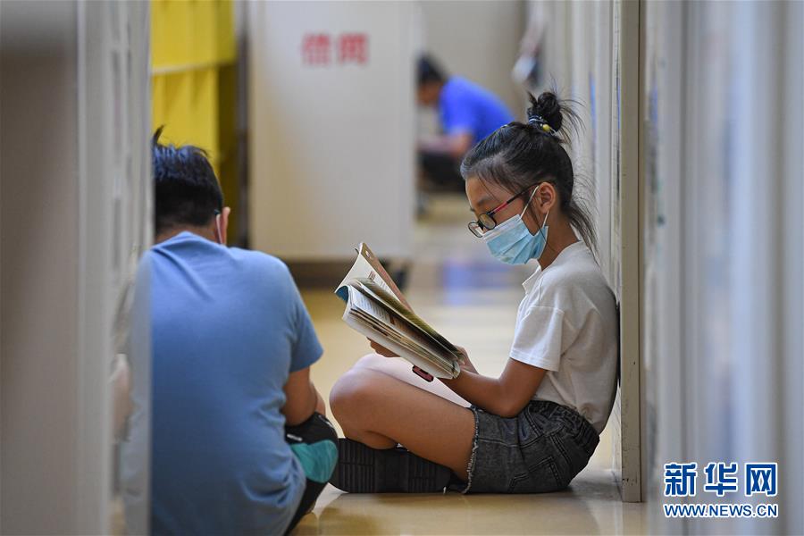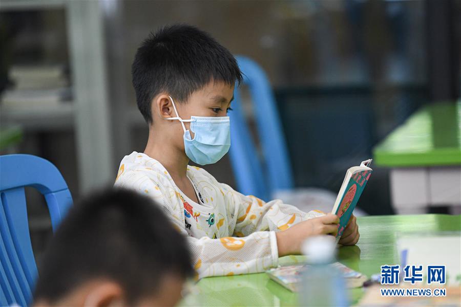 8月8日,小朋友在位于海口的海南省图书馆阅读书籍。新华社记者 蒲晓旭 摄