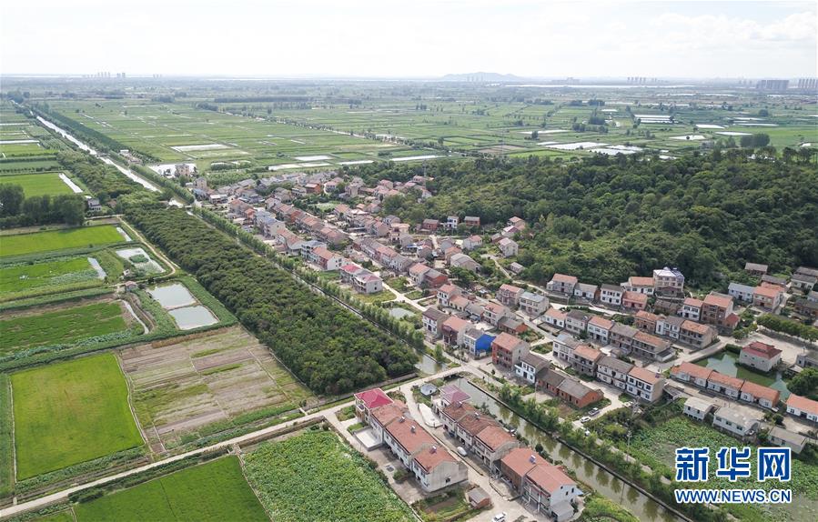 鸟瞰鄂州市长港镇峒山村(8月6日摄,无人机照片)。近年来,湖北省鄂州市长港镇峒山村着力提升村居环境,积极实施厕所改造、污水处理、道路硬化、植树绿化等措施,改善乡村面貌,提升村民幸福感。新华社记者 程敏 摄